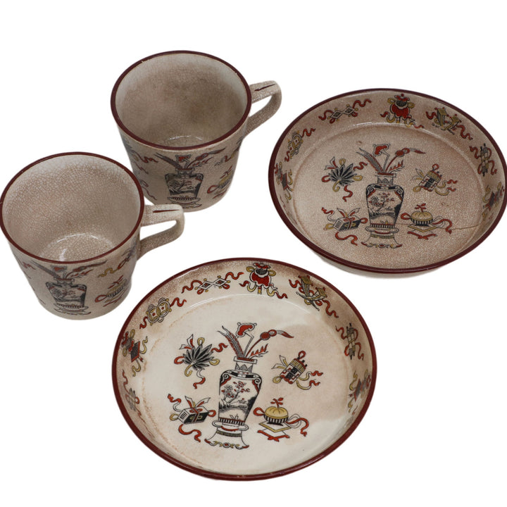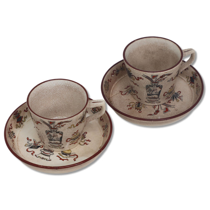Good condition. No chips or cracks, but have crazing and spots of discoloration.