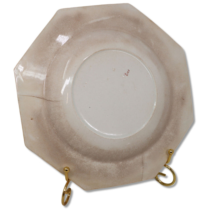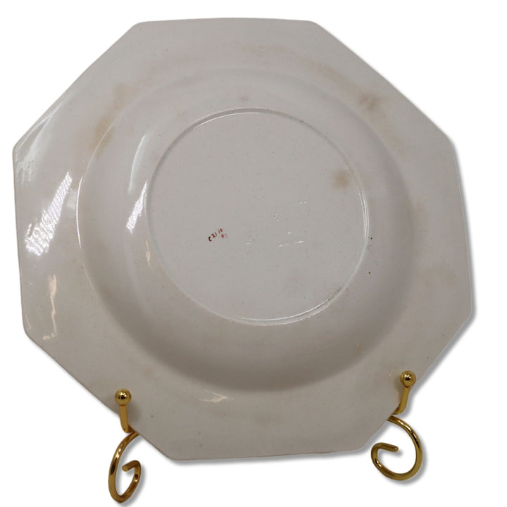 Mintons 2pc Woodseat C2110 Rimmed Soup Bowl Octagonal Ironstone Antique 1840's