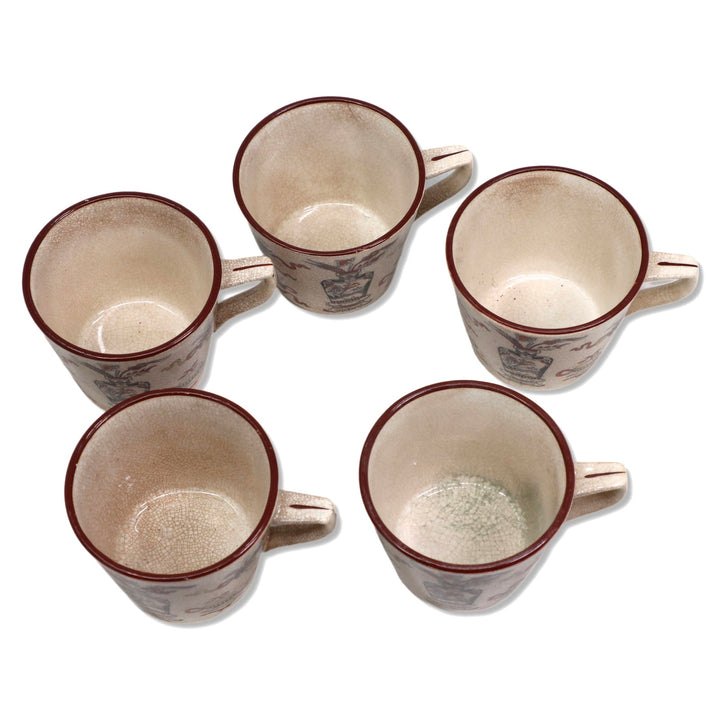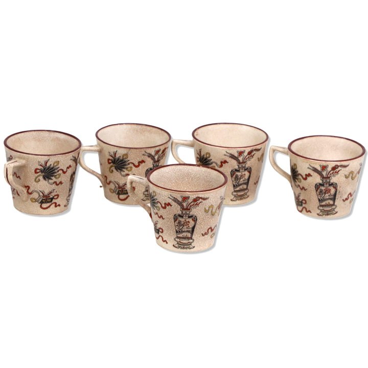 Mintons 5pc Woodseat C2110 Demitasse Tea Cups Ironstone Polychrome 1840's