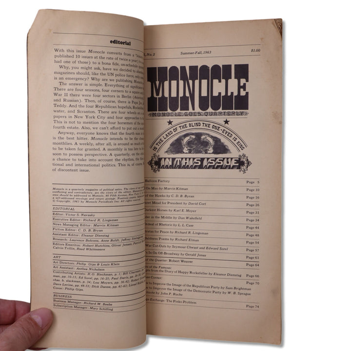 Monocle Magazine Vol 5, No 2 Summer-Fall 1963 by Bryan, C. D. B., et al Vintage