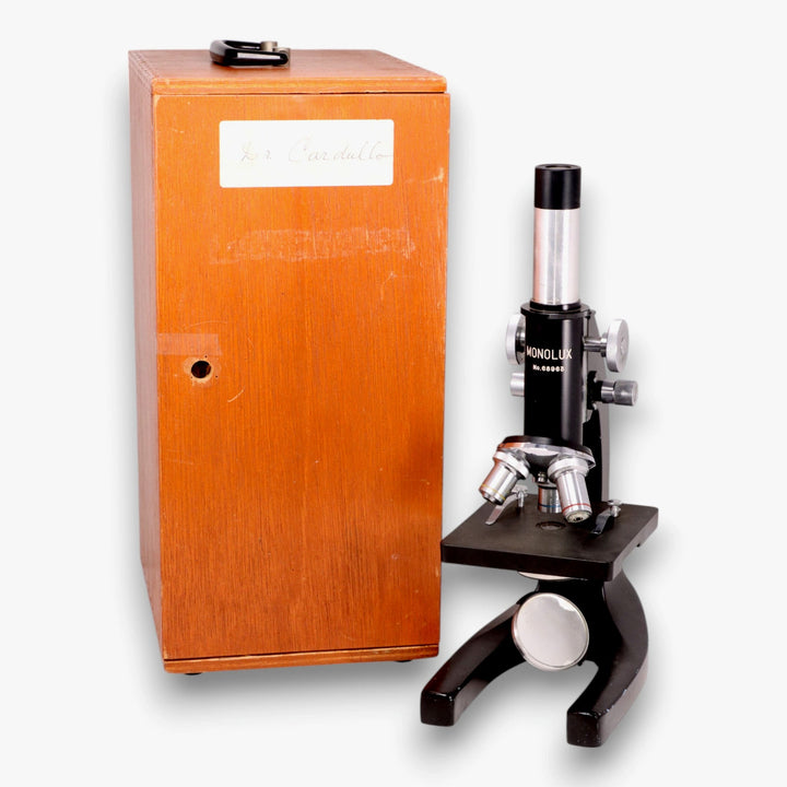 Monolux Microscope No 68963 Wood Case Japan Vintage 1960's
