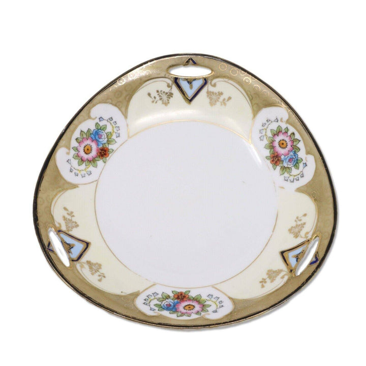Morimura Art Deco Nippon Three Handled Triangle 7.25" Bowl Floral Gold
