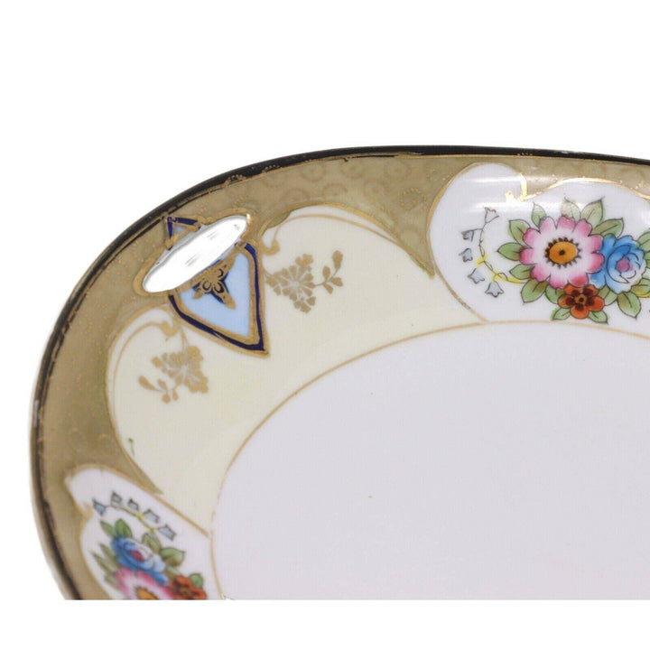 Morimura Art Deco Nippon Three Handled Triangle 7.25" Bowl Floral Gold Antique