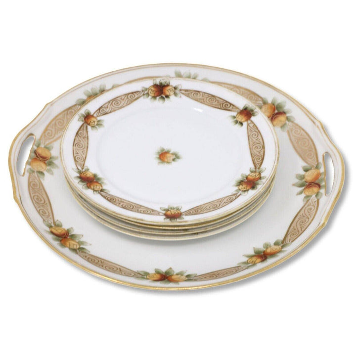 Morimura Bros 5pc  Set 10" Cake Plate 4 Dessert 6.25" Plates Nippon Antique 1900