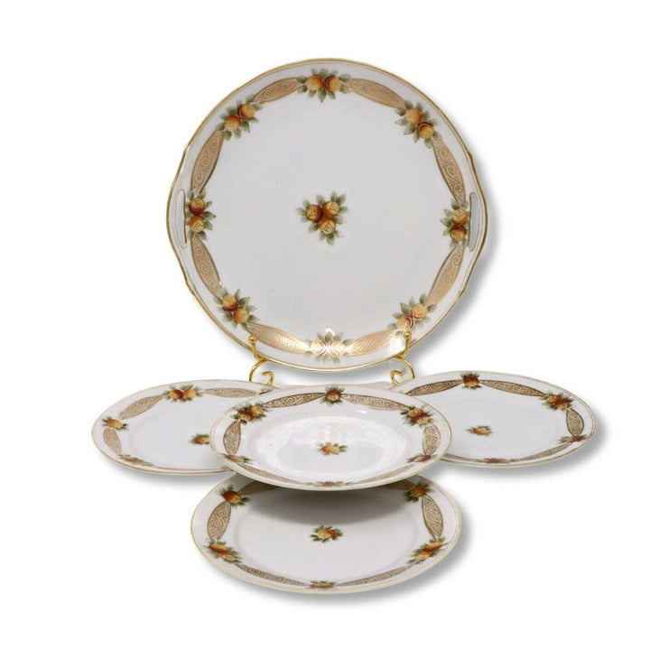 Morimura Bros 5pc Set 10" Cake Plate 4 Dessert 6.25" Plates Nippon Antique 1900