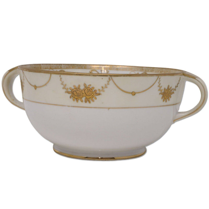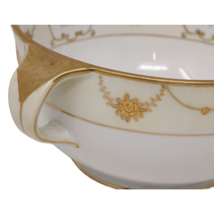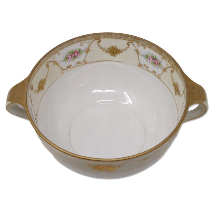 Morimura Bros Nippon 7.5"OD Serving Bowl HP Flowers Gold Trim Handles Antique
