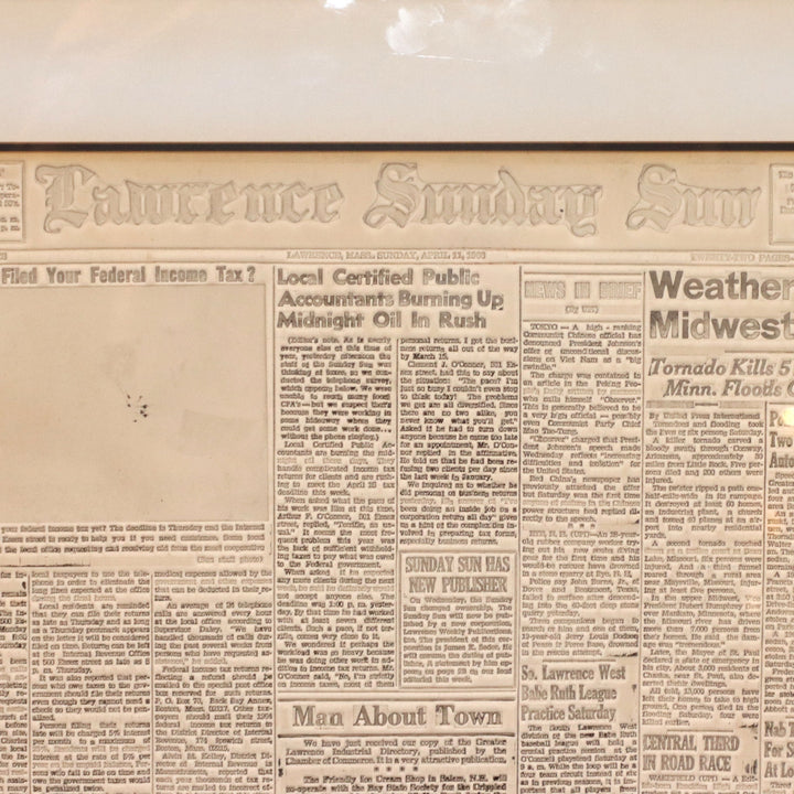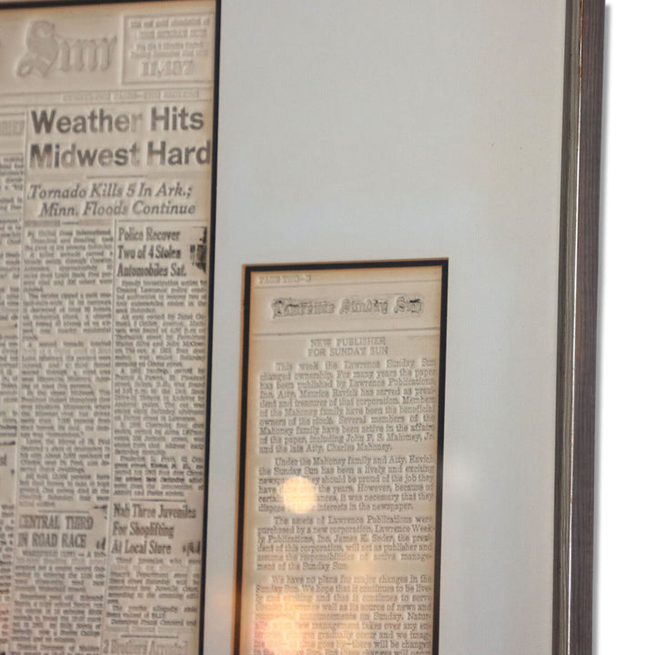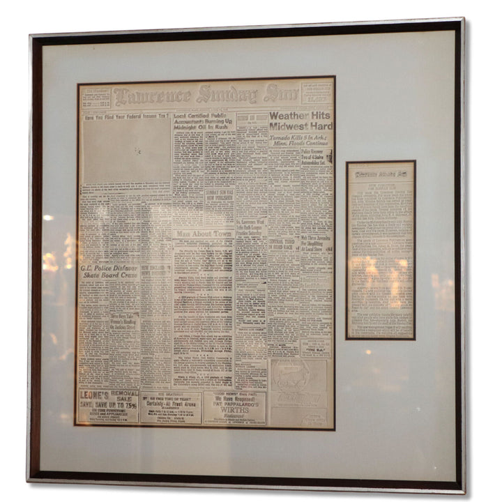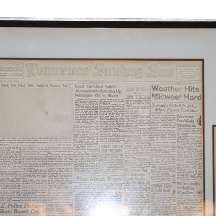 1966 Newspaper Print Plate Matrix Mat Framed Lawrence (MA) Sunday Sun Front Page