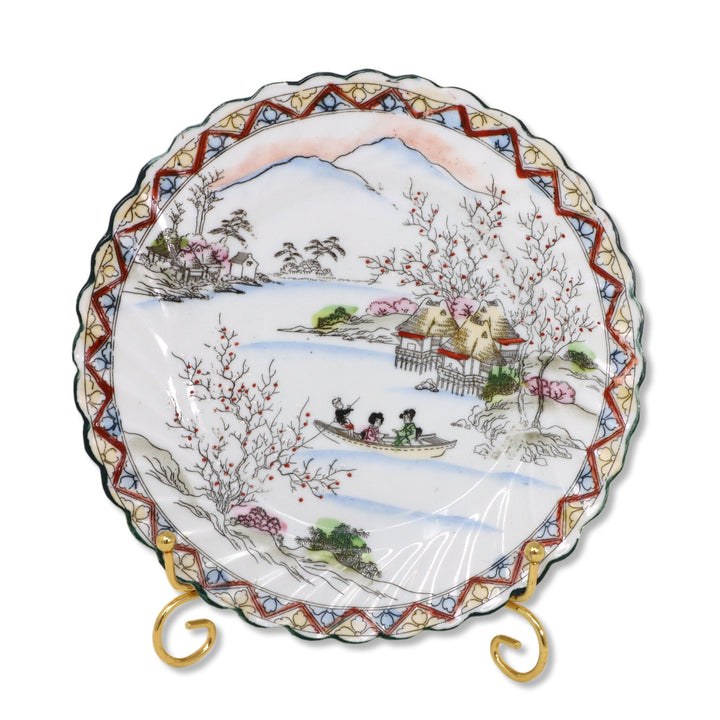 Nippon Dessert Plate 7.5" Hand Painted Boat on Lake Scene Circa 1900