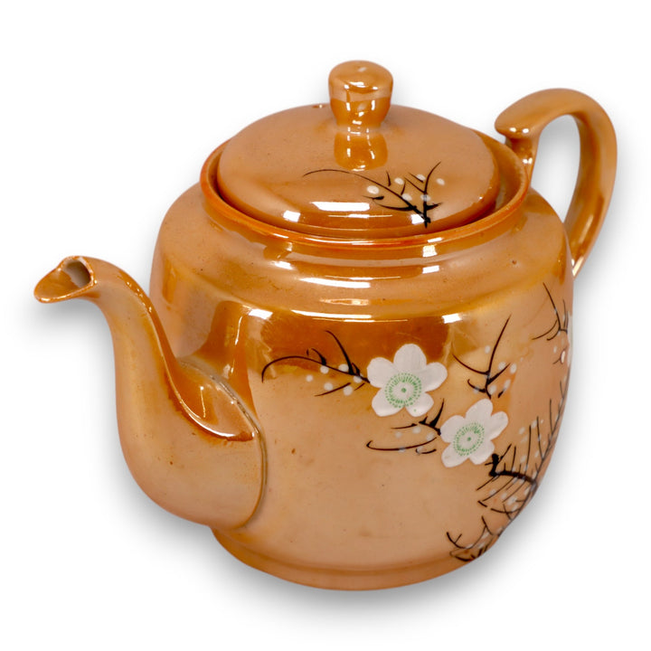 Nippon Hand-Painted Lusterware Teapot with Creamer & Sugar Bowl Antique 1900s