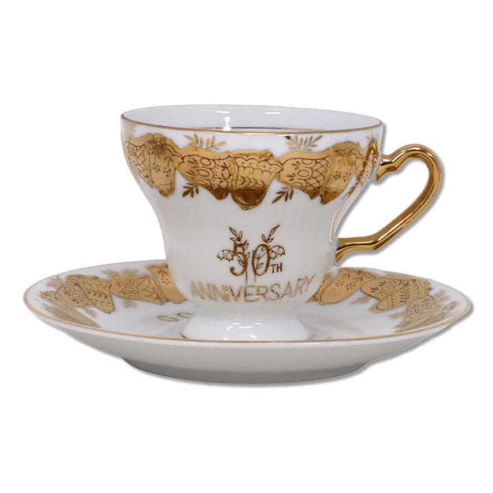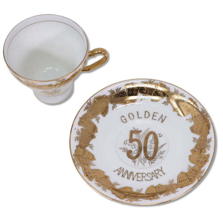 Norcrest C-247 Golden 50th Anniversary Wedding Bells Gilded Tea Cup 1950's