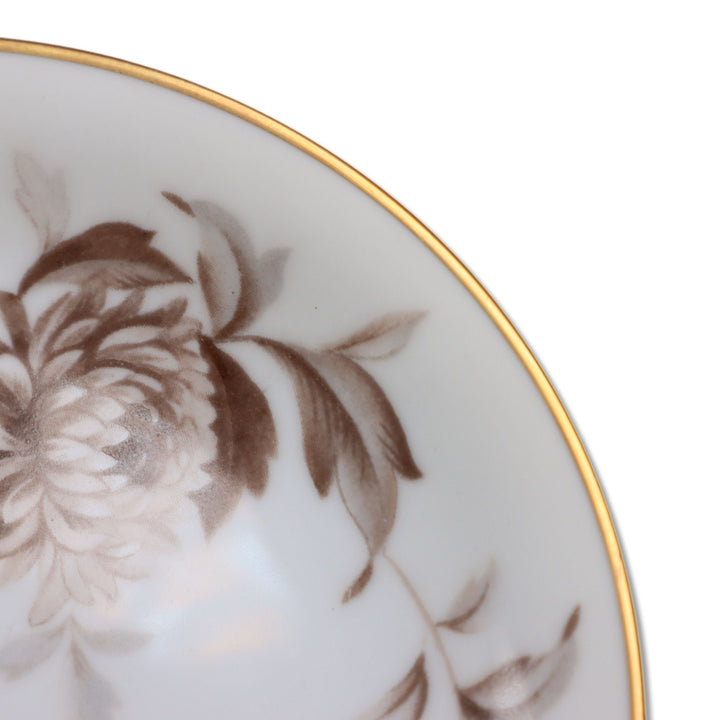 Gray/Brown Flowers And Leaves, Smooth, Gold Rim
