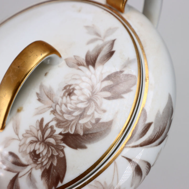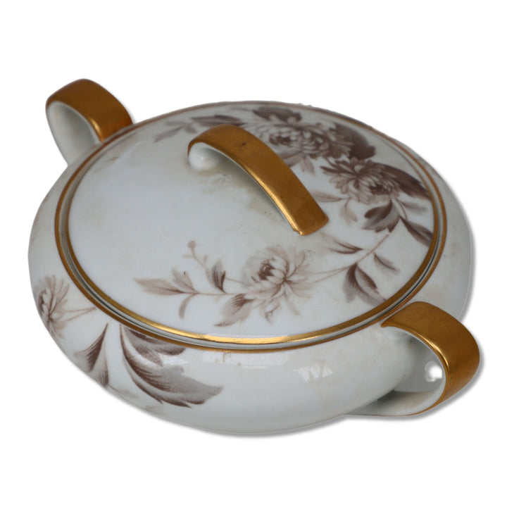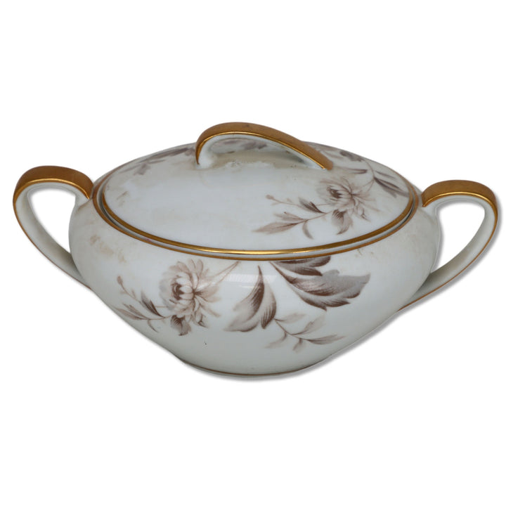 Noritake Lasalle 5142 Covered Sugar Bowl Brown Floral Gold Trim Japan 1950's