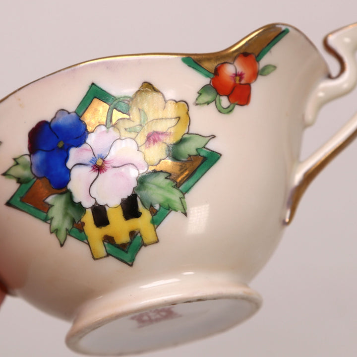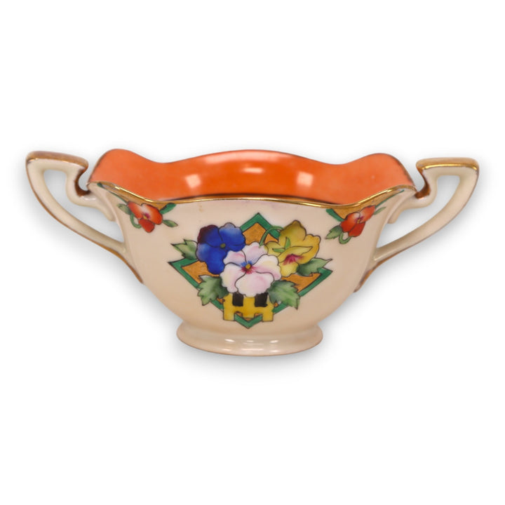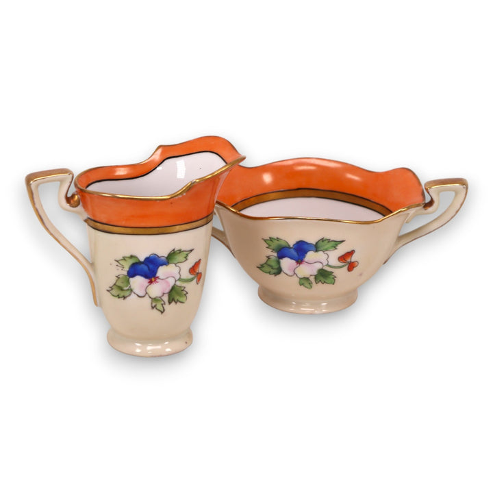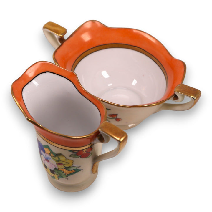 Noritake M Cream Sugar Bowl Set Gold Trim Floral Orange Japan