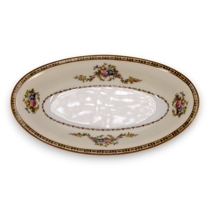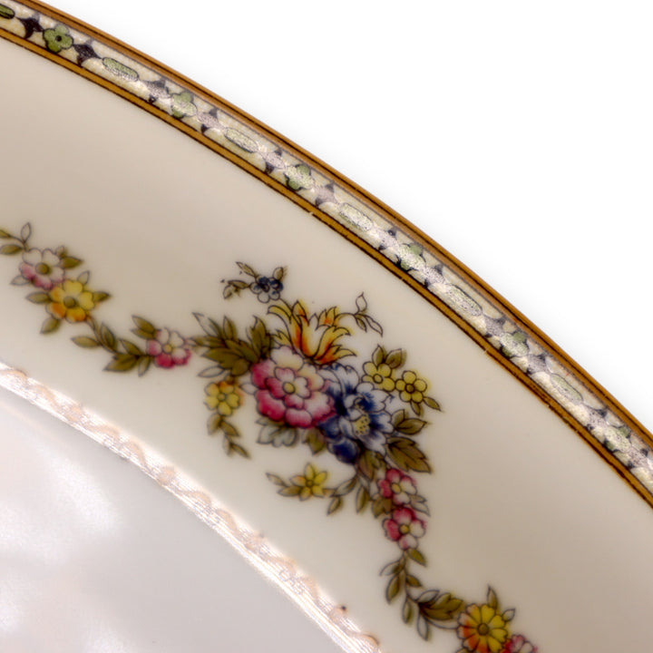 Noritake M Morimura Oval Vegetable Bowl Swags Plain Yellow Band Gold Trim Vintage 1933
