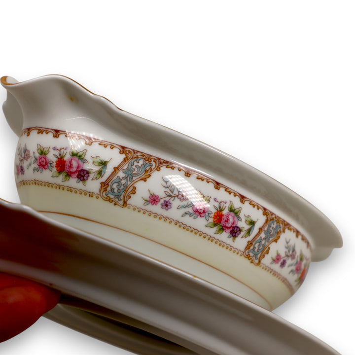 Noritake M Rosemary 5007 Floral Gold Trim Gravy Boat Vintage 1950's