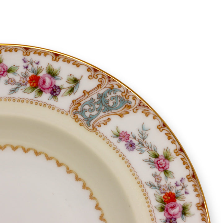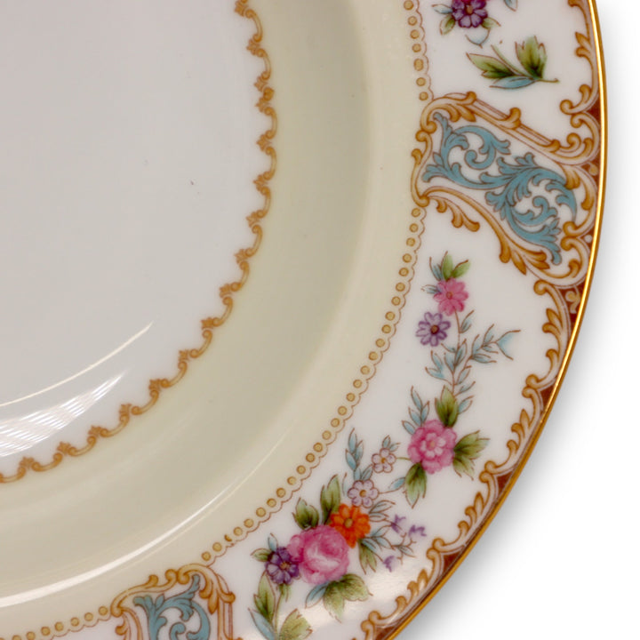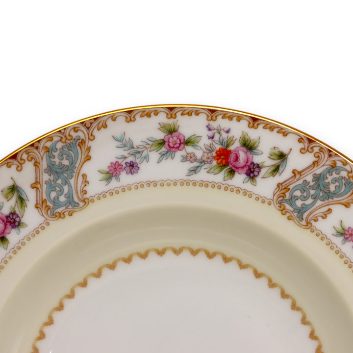 Noritake M Rosemary 5007 Floral Gold Trim Rimmed Soup Bowl 8" Vintage 1950's