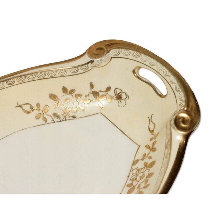 Noritake Maruki Mark Nippon Oval Asparagus Bowl Gold Moriage Porcelain 1910