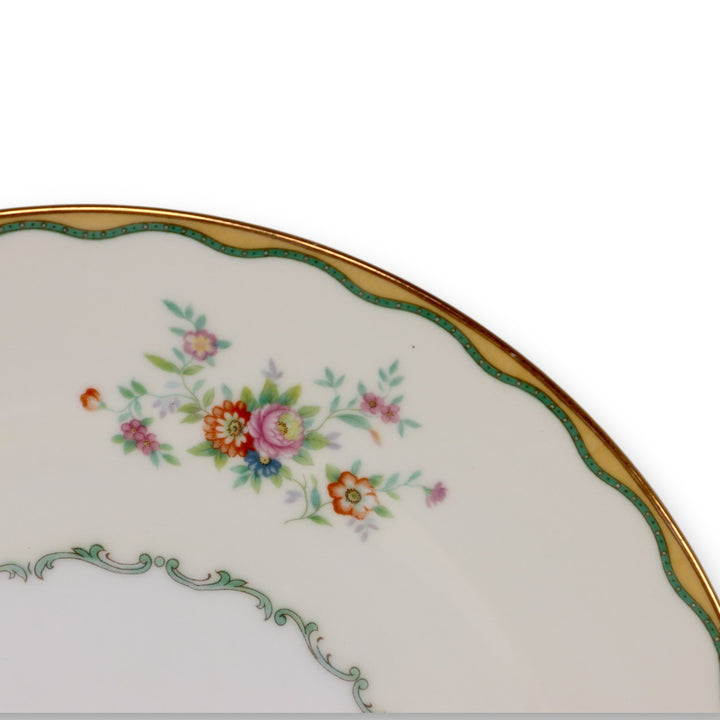 Noritake N284 Green and Yellow Wavy Border Floral 10" Dinner Plate