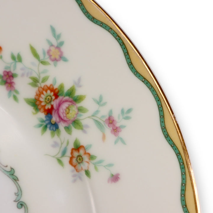 Noritake N284 Green & Yellow Wavy Border, Floral 10" Dinner Plate
