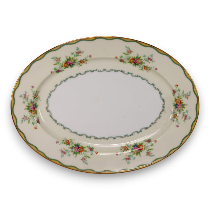 Noritake N284 Green and Yellow Wavy Border Floral 11 1/2" Oval Platter
