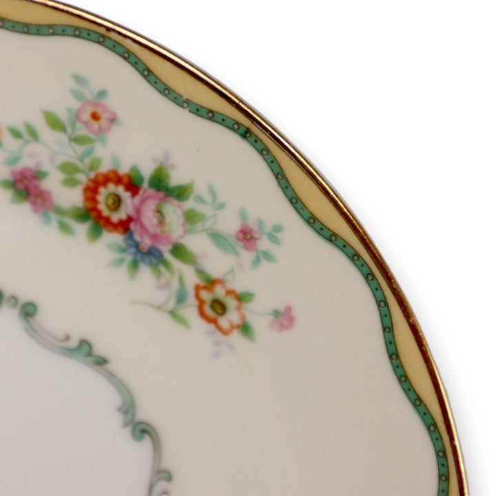 Noritake N284 Green and Yellow Wavy Border Floral 6 1/2" Bread Plate