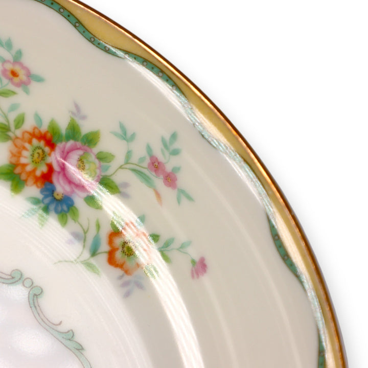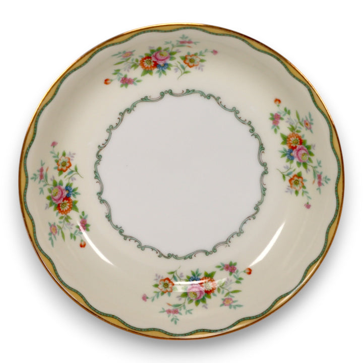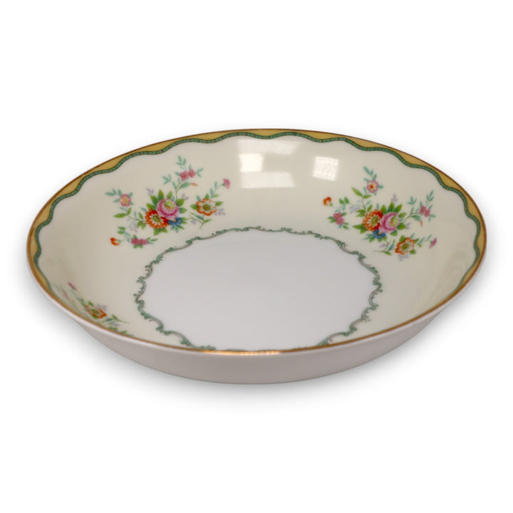Noritake N284 Green and Yellow Wavy Border Floral 71/2" Coupe Soup Bowl