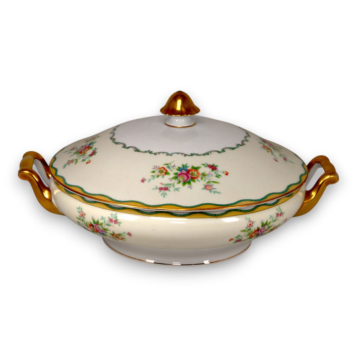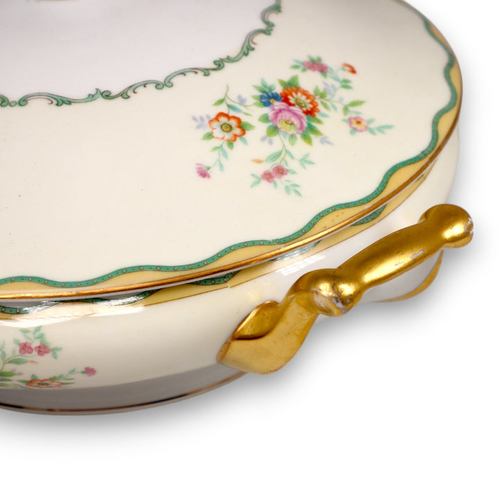 Noritake N284 Green and Yellow Wavy Border Floral Covered Vegetable Bowl
