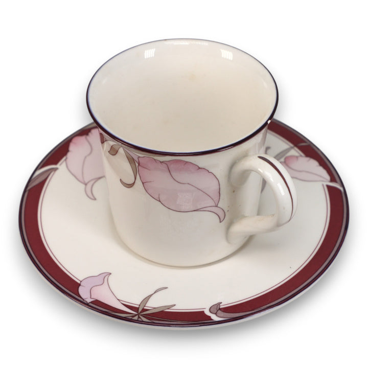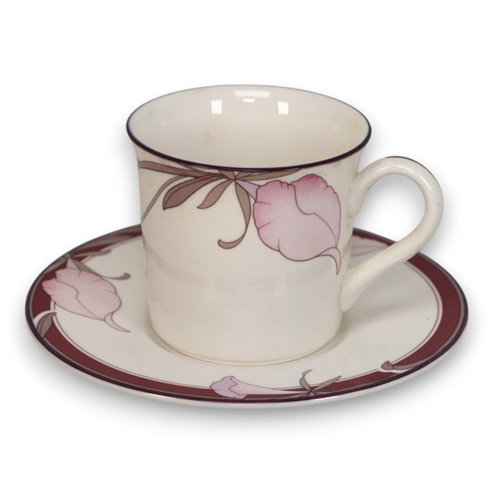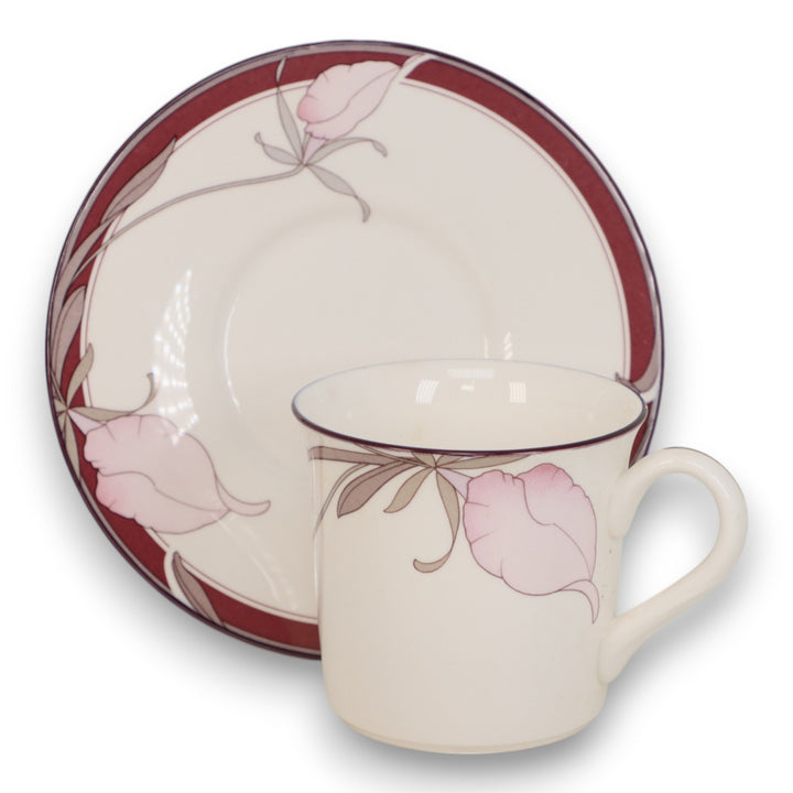 Noritake Plum Orchid 9098 Flat Tea Cup Saucer Set New Decade Japan 1980's