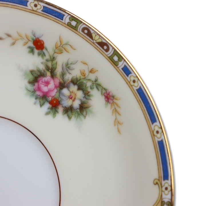 Blue & Tan Edge, Floral Sprays, Gold Edge