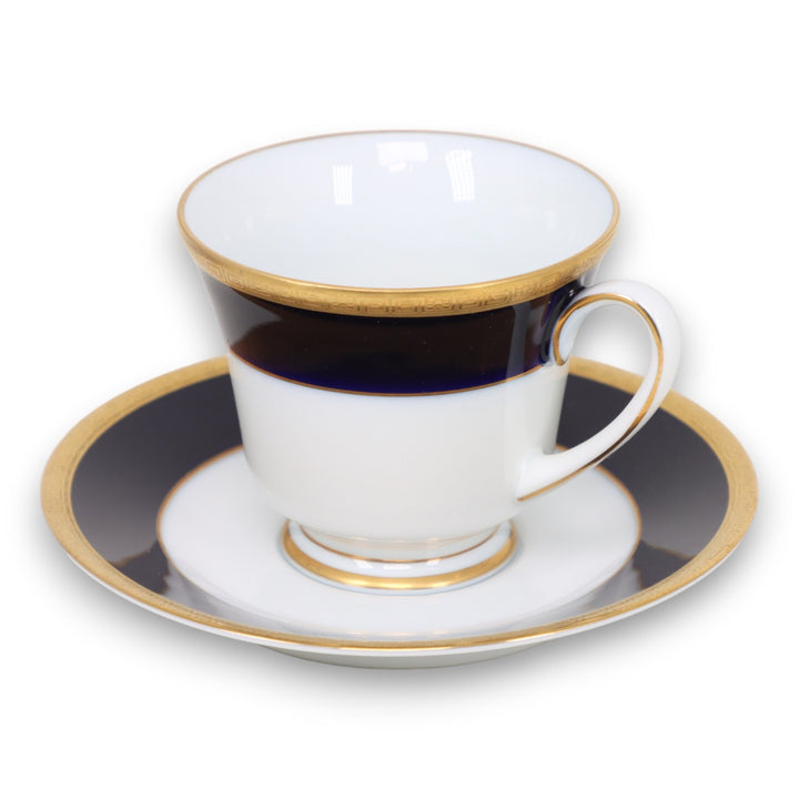 Noritake Vahalla Tea Cup Saucer Set Cobalt Blue Gold Rim Japan Vintage 1970's