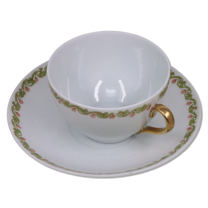 O&EG Royal Austria Clover Rim Tea Cup Saucer Set OSG32 Antique Circa 1900