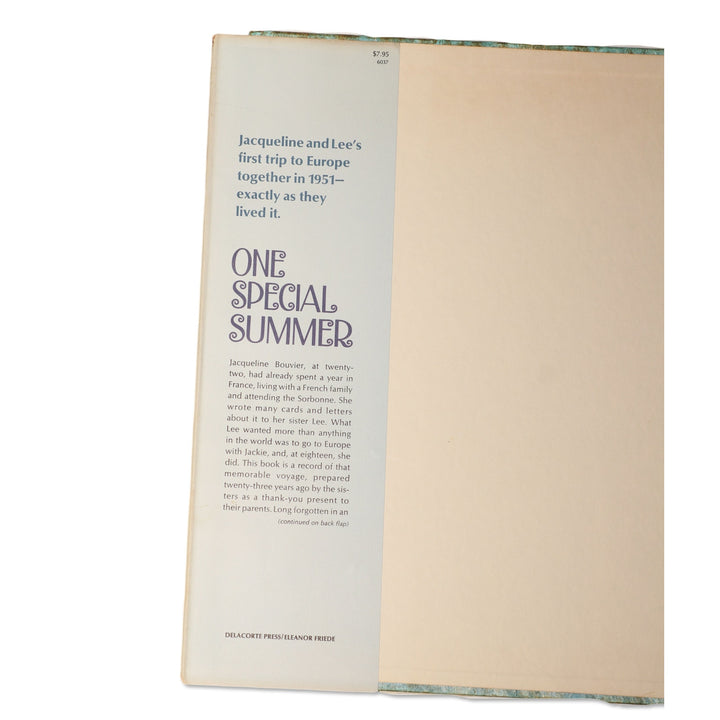 This is a first edition copy of One Special Summer (1974), written and illustrated by Jacqueline Bouvier (later Jacqueline Kennedy Onassis) and her sister Lee Bouvier (later Lee Radziwill). The book is an intimate, whimsical record of the sisters’ 1951 European trip, presented with handwritten text and colorful illustrations. A must-have for collectors of Kennedy family memorabilia, vintage travel narratives, and Americana.
