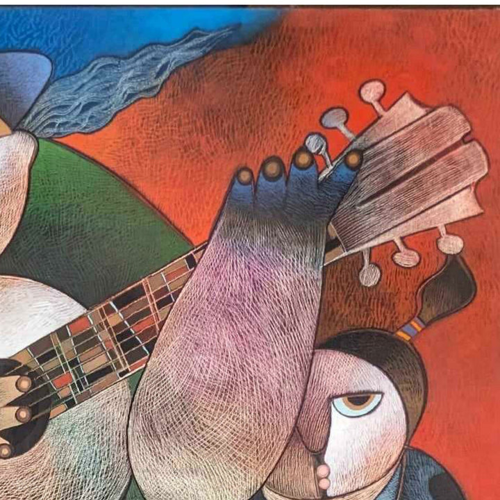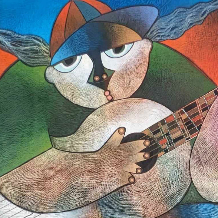 Orestes Gaulhiac Man with Guitar Oil on Canvas Cuban Original 39x32 1999