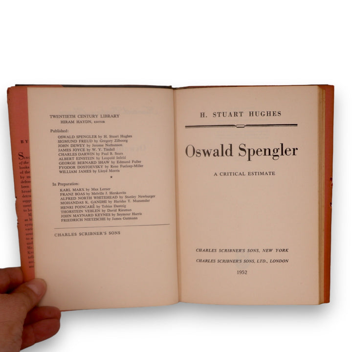 Oswald Spengler A Critical Estimate 1952 1st Edition H. Stuart Hughes HC DJ