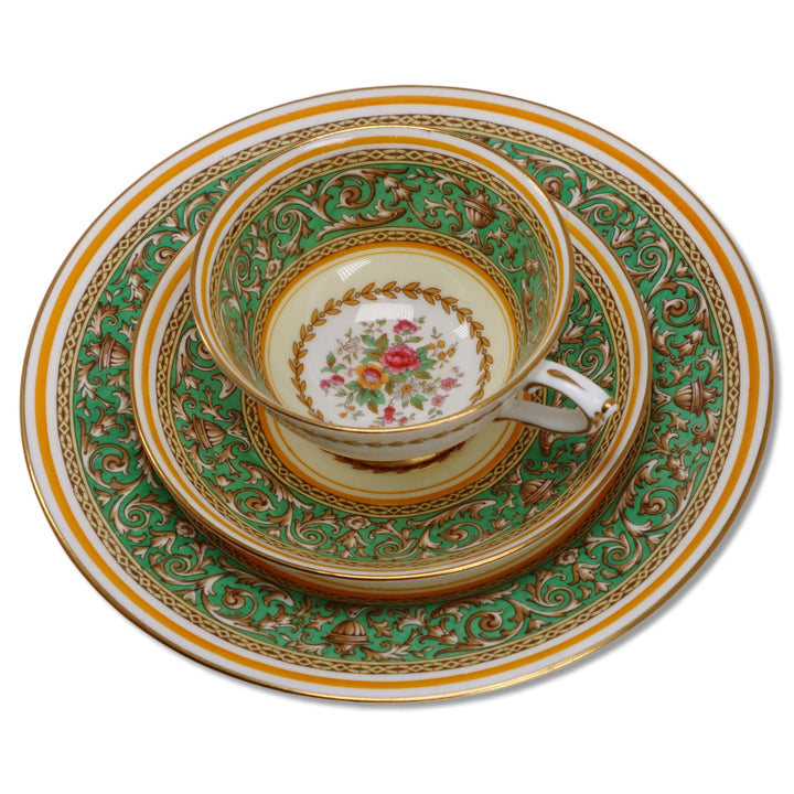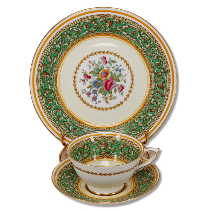 Paragon Corinthian Green Tea Cup Saucer 8" Luncheon Dessert Plate trio 1920's