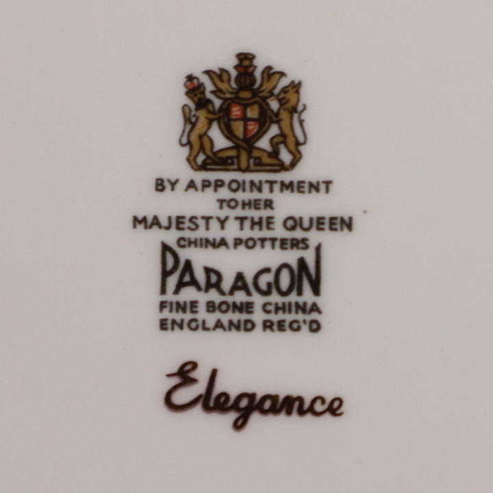 Backstamp: “By Appointment to Her Majesty the Queen, Paragon Fine Bone China England, Elegance”