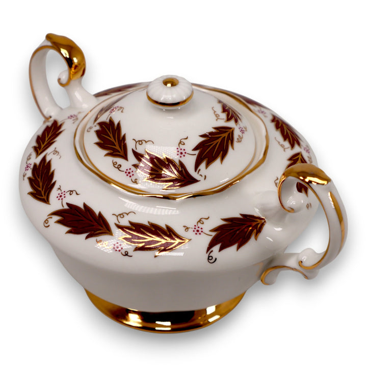 Paragon Elegance Sugar Bowl Bone China Burgundy Maple Leaves Vintage 1950s