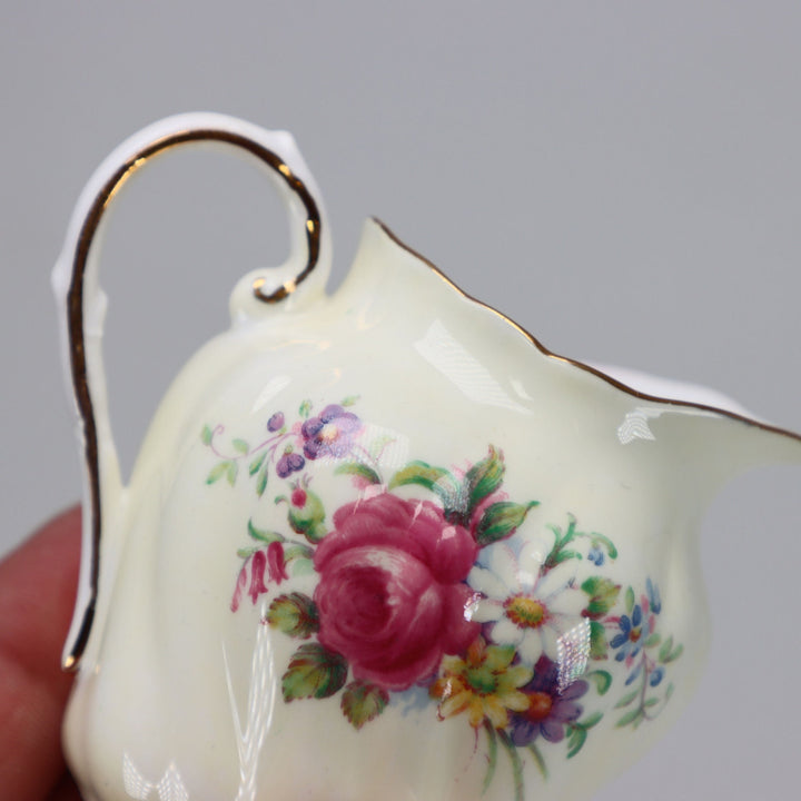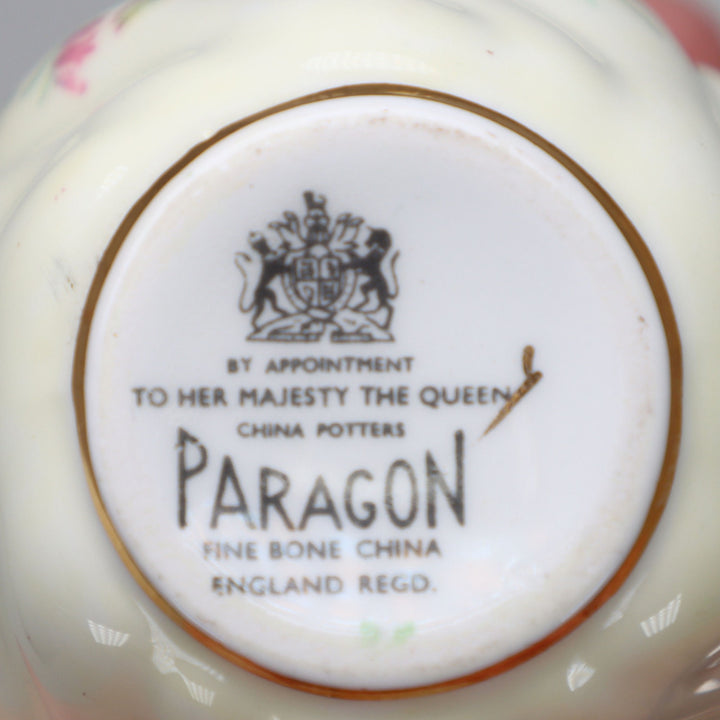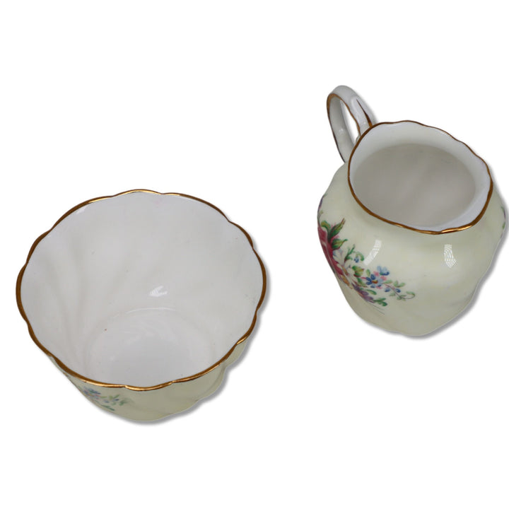 Paragon Roses on Pale Yellow Creamer Sugar Bowl Set Bone China England 1950's