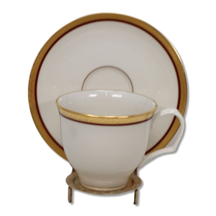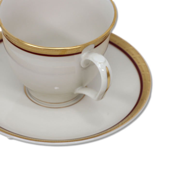 Pickard Dominique Regal Tea Coffee Cup Saucer Set Gold Burgundy Banded