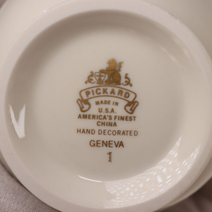 Pickard Geneva Ivory Bone China Creamer Sugar Bowl Set Platinum Trim USA