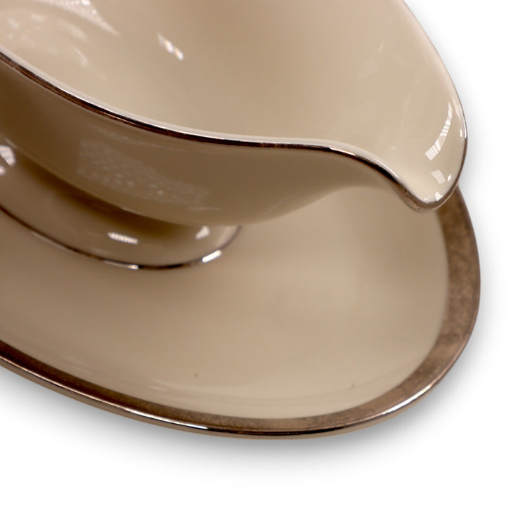 Pickard Geneva Ivory Bone China Gravy Boat Platinum Trim USA