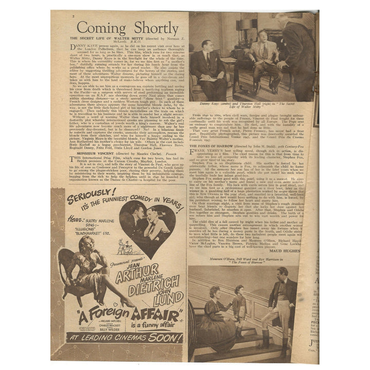 A 16 page UK film magazine featuring new and future movie releases of the time with gossip from the set, movie news, photos, star biographies, film reviews etc. Please see photos for a flavor of the contents.