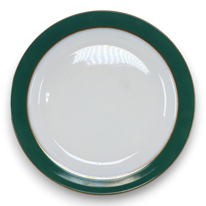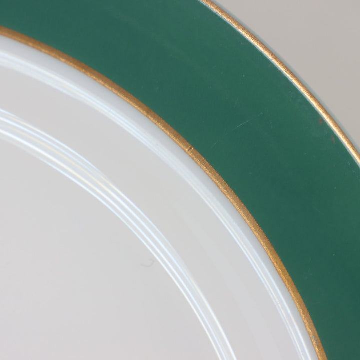 Pyrex Green Band Gold Trim White Milk Glass Charger Platter Chop Plate 12 1/2"