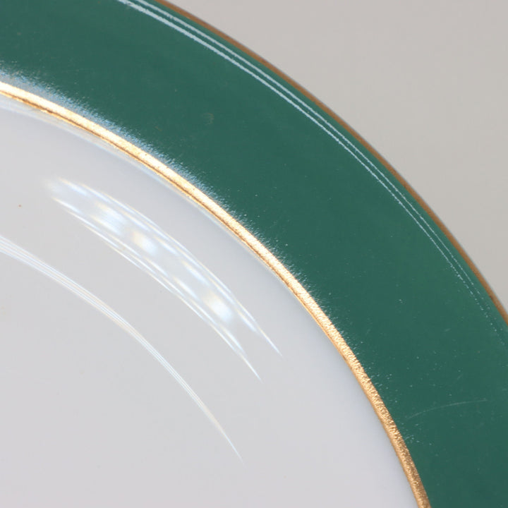 Pyrex Green Band Gold Trim White Milk Glass Charger Platter Chop Plate 12 1/2"