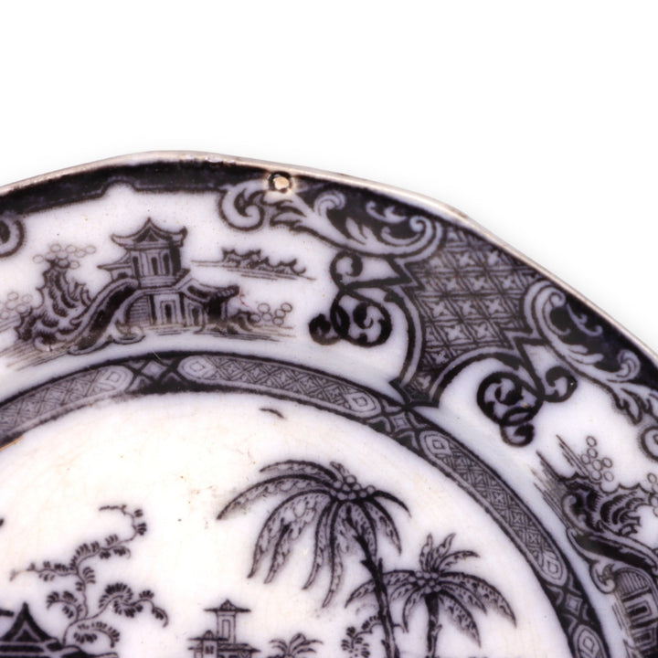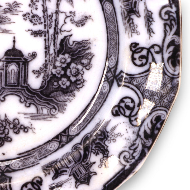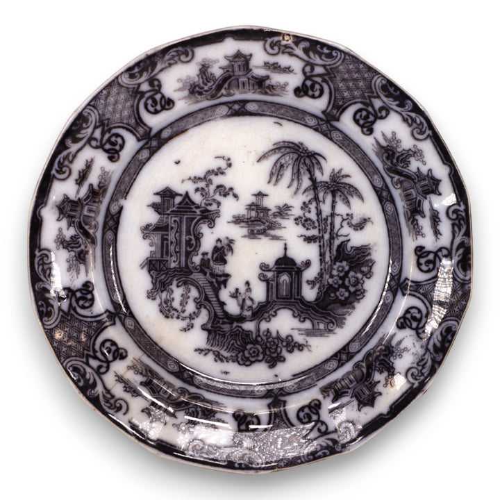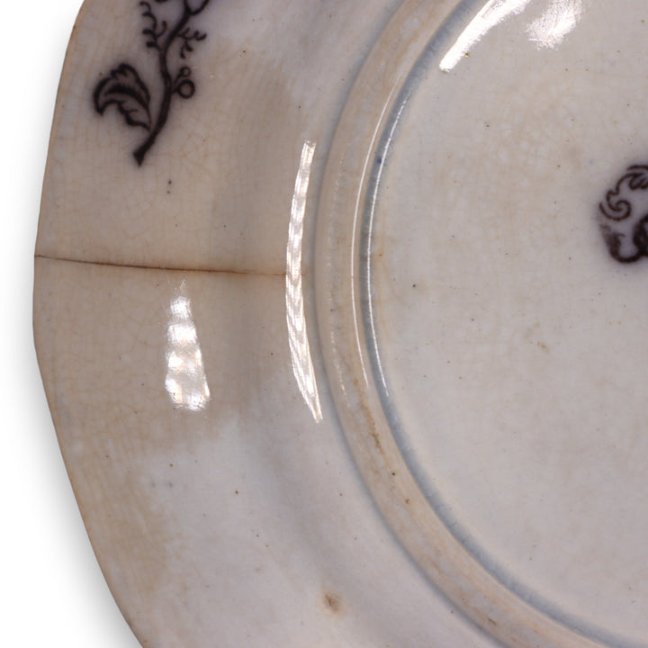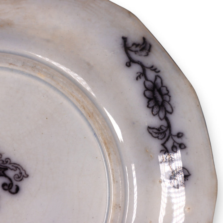 Ralph Hall Ning Po Mulberry Flow Black 7 1/2" Salad Plate Antique 1840's