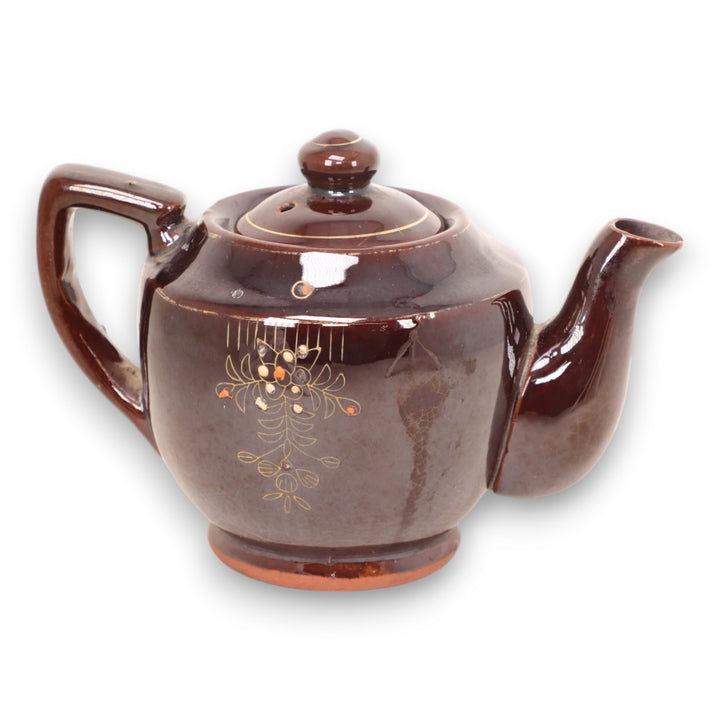 Redware Brown Pottery Moriage Japanese Vintage Teapot 1920's-1940's