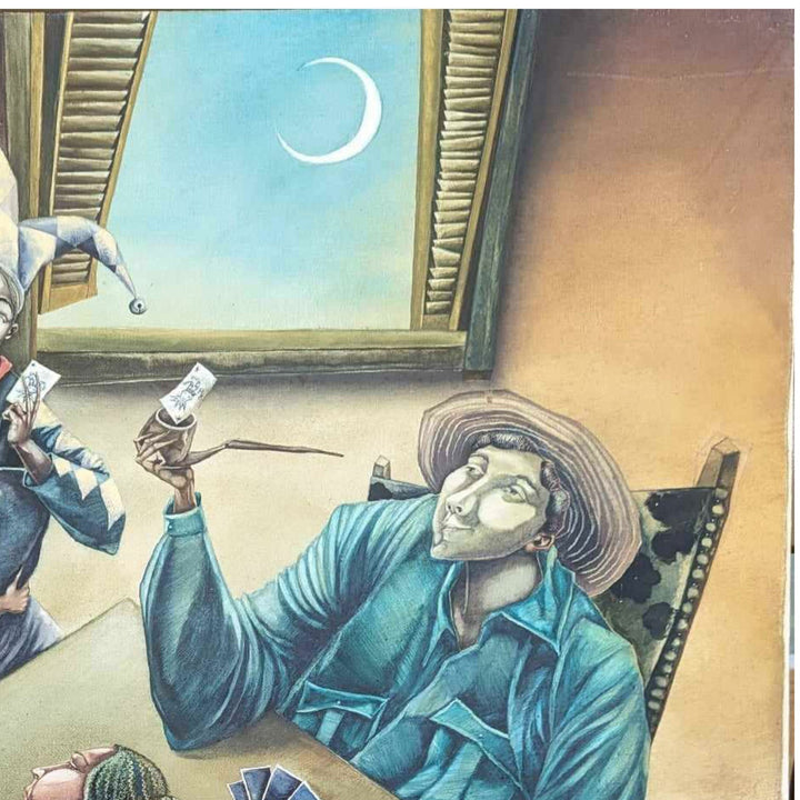 Rene Ramos Jester Card Player 39x32 Oil Canvas Original Cuban Art Painting 2000
