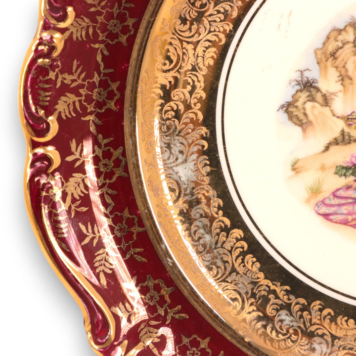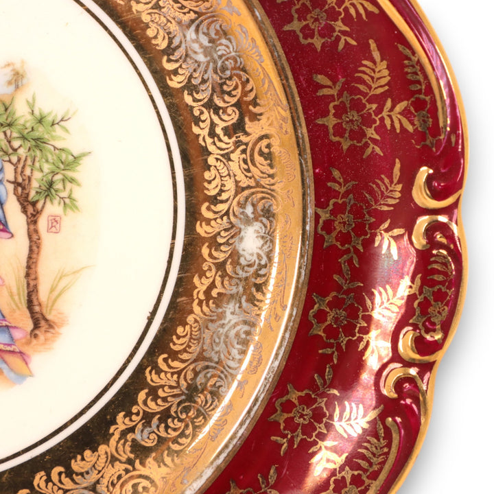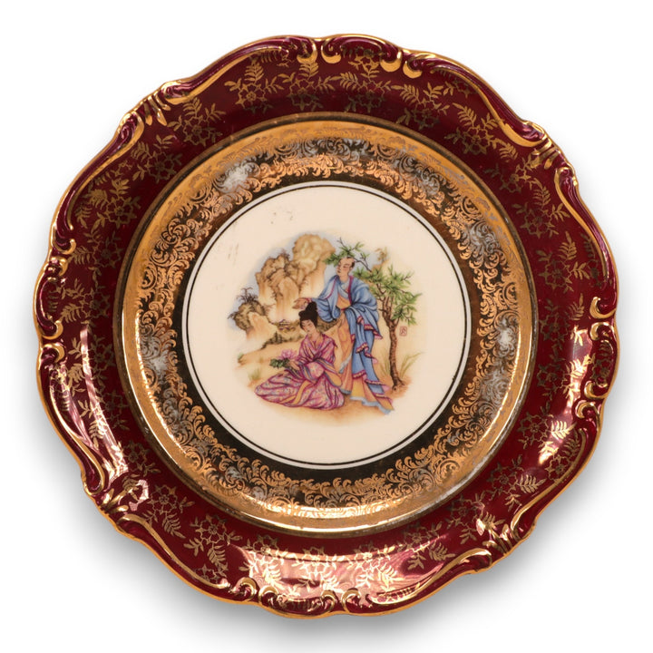 Rosenthal 2pc Oriental Courting Couples Pompadour Plate Set 8 1/4" 1940's
