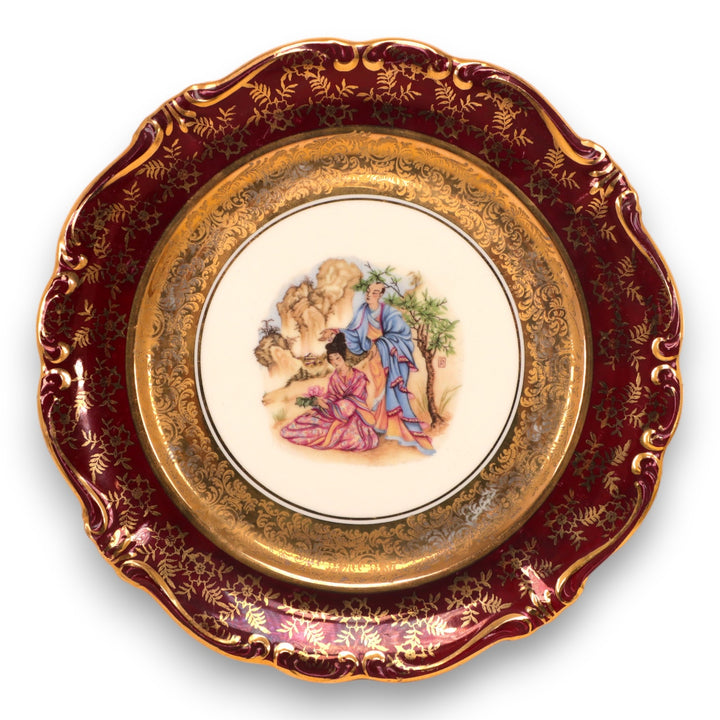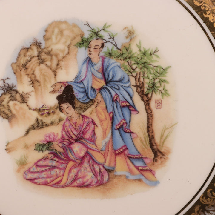Rosenthal Oriental Courting Couples Pompadour 2pc Cabinet Plate Set 8 1/4" Germany 1940's