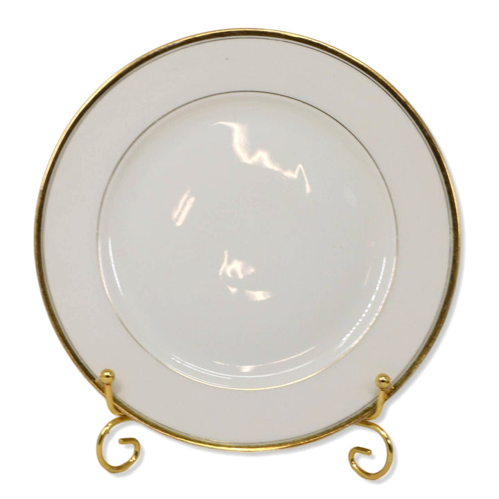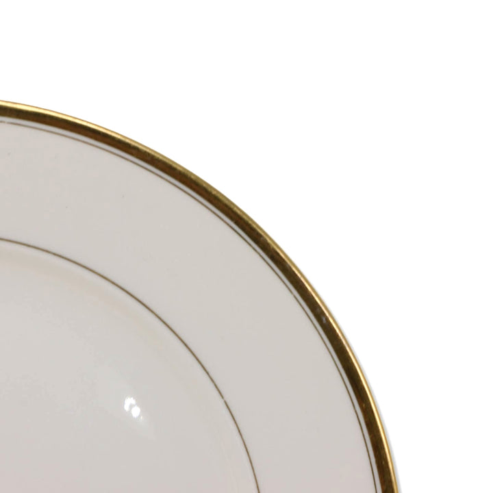 Smooth gold banded edge plates with cream body and thin gold band ring on verge..